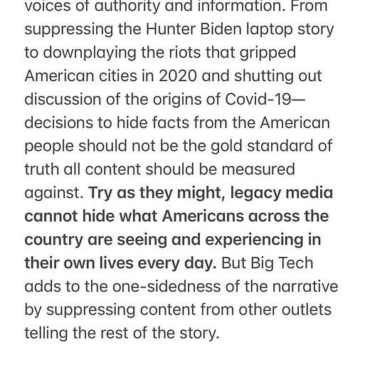 But Big Tech doesn’t just act on these institutions/forces, they are all horrendously interwoven, making each node in the tangled ecosystem…worse? More complicated? You can make Facebook or YouTube safer. But you can’t necessarily change the ways all this shit has changed us or the ways it will continue to distribute/re-distribute money, power, influence, culture, and information. You can probably find ways to ameliorate the inequalities some but ‘fix’ is an impoverished word when it comes to Facebook. Fix…what exactly? And how exactly? Can we even decide and agree on what to fix and how? You tell me. But before you do, here’s what the Republican leader in the House said yesterday in response to the Facebook Papers: