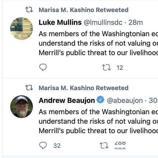 Still, the op-ed blindsided Washingtonian employees. Two I spoke with saw the op-ed while casually checking Twitter and were shocked — and their surprise quickly turned to hurt and frustration.